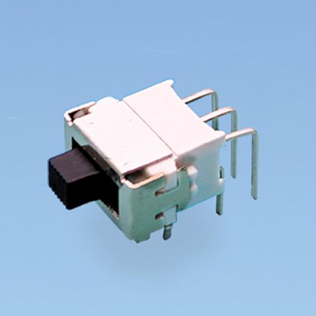 This slide switch features vertical actuation and vertical right angle PC thru-hole termination....