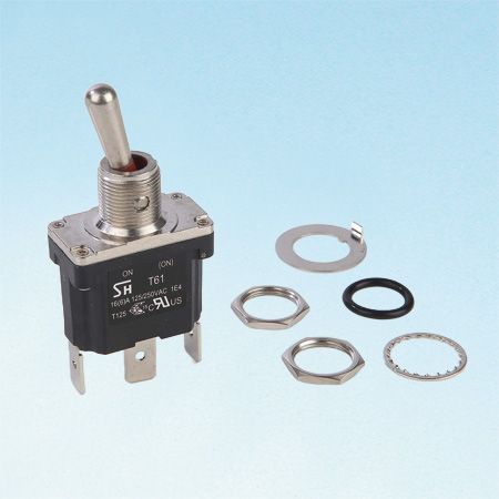 Les interrupteurs à bascule de la série T61 répondent aux exigences des applications dans des environnements sévères. Les caractéristiques de construction de qualité comprennent un joint en élastomère moulé entre le levier à bascule et la douille, ainsi qu'entre le couvercle et le boîtier. De plus, les inserts du terminal sont moulés dans un boîtier en thermoplastique à haute résistance aux chocs. L'étanchéité complète de la chambre de commutation a permis aux interrupteurs T61 de se conformer à la norme UL508. Ces interrupteurs peuvent être utilisés dans des panneaux soumis à des éclaboussures et des lavages périodiques, tels que ceux couramment rencontrés dans les équipements alimentaires et de boissons. Ils résisteront également à l'exposition à de fortes accumulations de rosée matinale qui peuvent se condenser sur le panneau de contrôle dans les cabines des véhicules laissés à l'extérieur pendant la nuit.