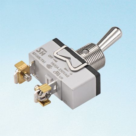 Interruttori a levetta industriali impermeabili di alta amperaggio con leva in metallo o isolata. La caratteristica costruttiva è che il supporto terminale e il contatto sono realizzati da un unico pezzo di metallo. I contatti sono saldati a resistenza al terminale per una maggiore resistenza meccanica. È completamente sigillato secondo gli standard IP68. Questo interruttore è perfetto per attrezzature e macchinari di grandi dimensioni all'aperto.